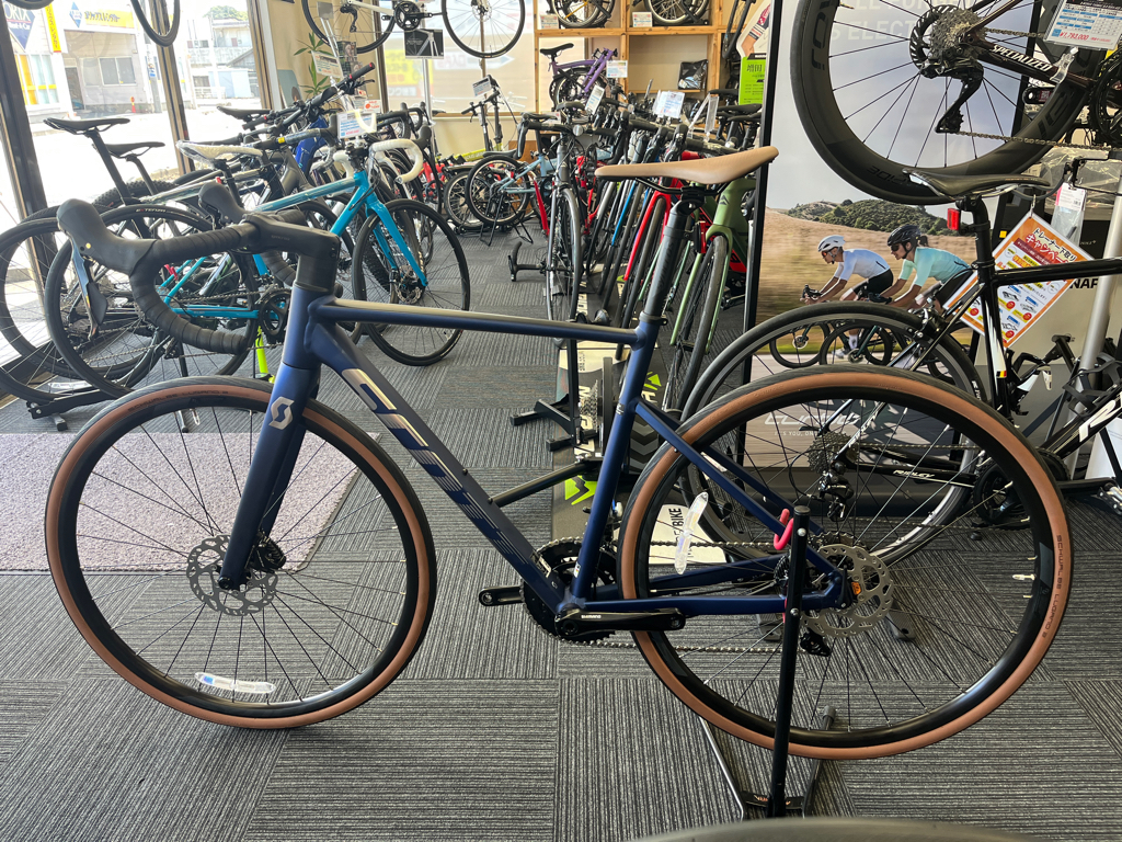 大人の雰囲気が漂うスコットのロードバイク。30cのタイヤが安心感とスピードを両立させます!シマノ105 11速仕様!
